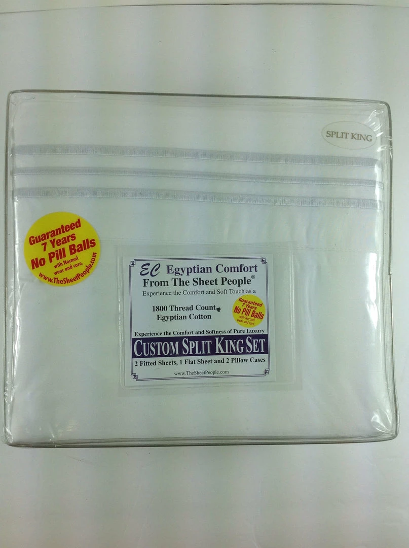 The split king bed (also known as a “Dual King”) has two mattresses, so this set has two Twin fitted sheets that measure 39 x 80 inches. It also includes a matching king flat sheet, and two size appropriate pillowcases. The bottom edge of each fitted sheet is fully elasticized so you don’t have to worry about the fitted sheet slipping off the mattress in the middle of the night.