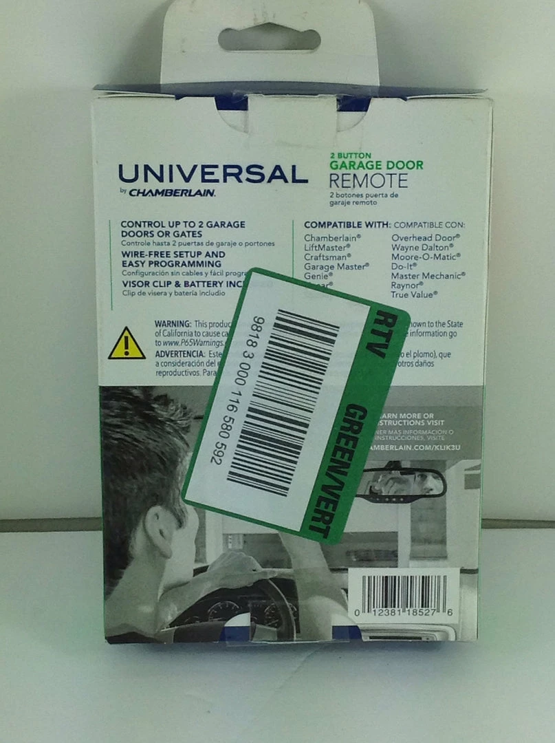 The Original Clicker Universal Garage Door Remote keeps you moving with two buttons that control up to two different brands of garage door openers individually. This easy-to-program remote is compatible with over 90% of all garage door openers installed in North America, including major brands such as Chamberlain, LiftMaster, Craftsman, Genie and many more. Whether replacing, updating, adding or consolidating remotes, this remote is the one that you know will work. Rigorous quality testing ensures secure encryption to prevent hacking and extreme 800-ft. range for immediate access. It can also control gate operators and MyQ Light Accessories for an all-in-one solution.