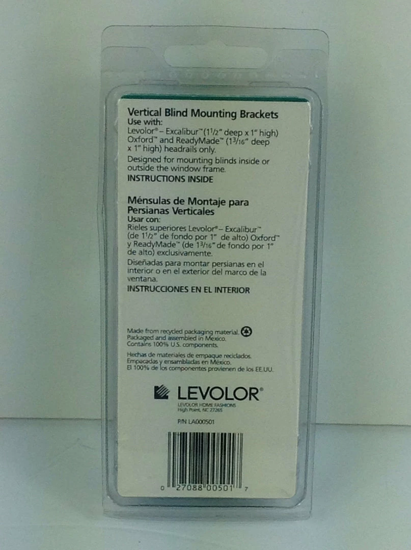 Designed for mounting blinds inside or outside the window frame. Designed exclusively for use with LEVOLOR Trim+Go ™ vertical blinds. Package of 2.