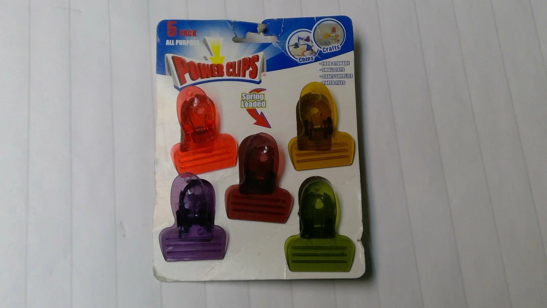 Spring loaded Power Clips keep a tight grip — use in the kitchen, pantry, office, craft room, toy room, and more! Each pack contains 5 small clips. Great for sealing open bags of snacks to keep the freshness in. 5 Pack Power Clips