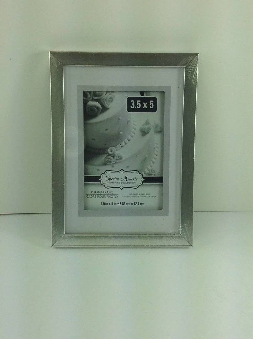 Special moments picture frame for wall mount or easel back horizontal or vertical display with glass pane. 3.5″ x 5″ Silver
