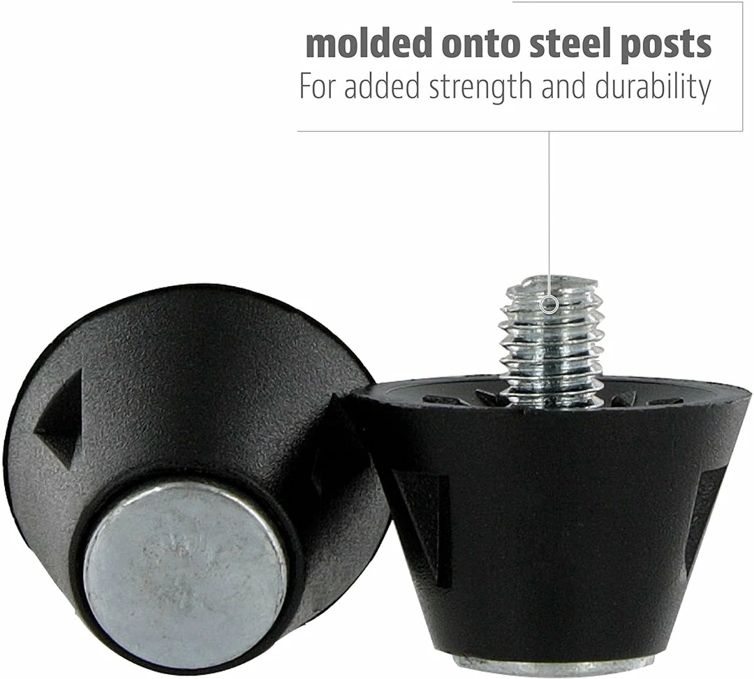 Made By Sof Sole. Molded onto steel posts for added strength and stability, these Sof Sole. replacement football cleats are constructed from high-quality composites, which add superior flexibility and wear resistance. Fits into any Regular Screw-In Shoe. Includes 14 Total Cleats with a Cleat Wrench. Height: 1/2″