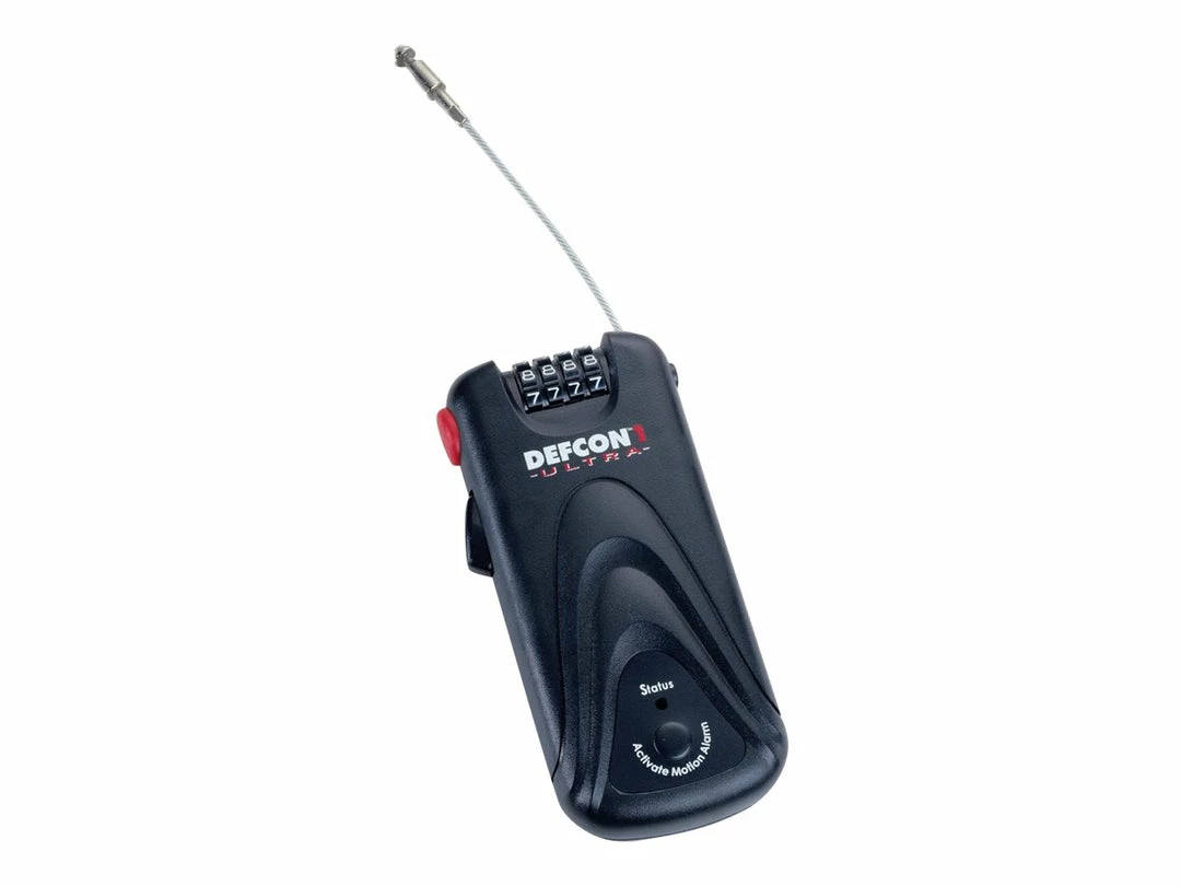 Alarm is activated when cable is severed or when motion sensor is armed and triggered - Lock Slot
