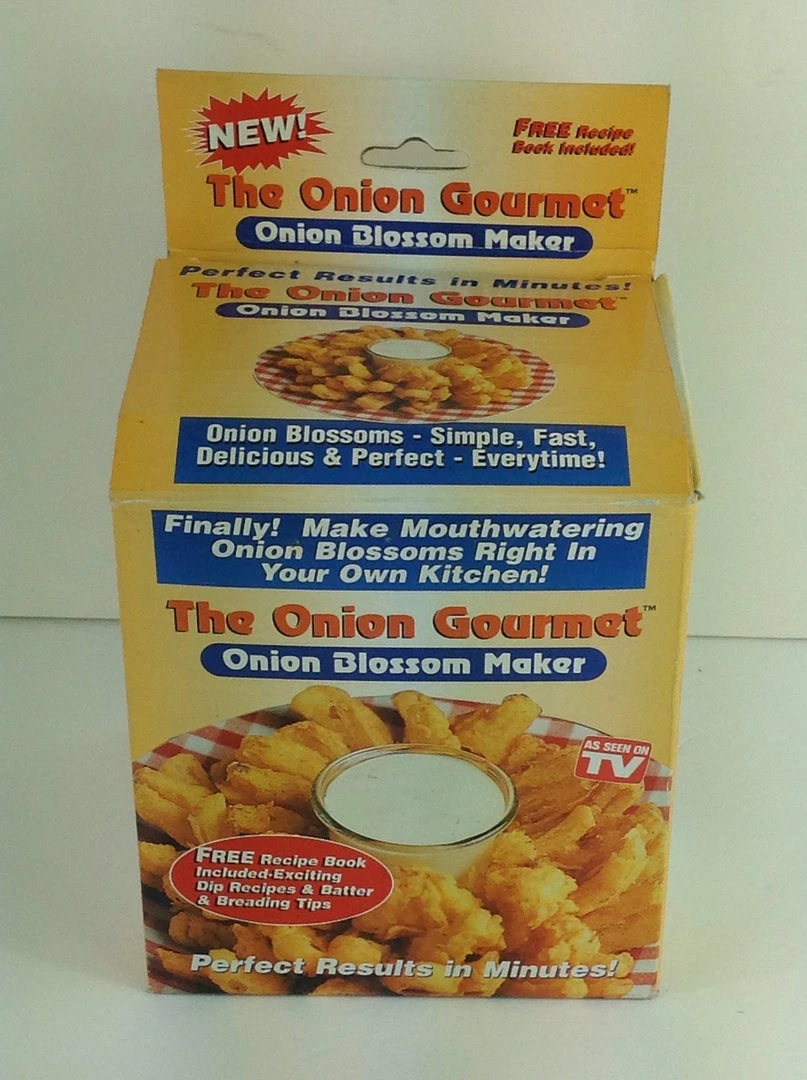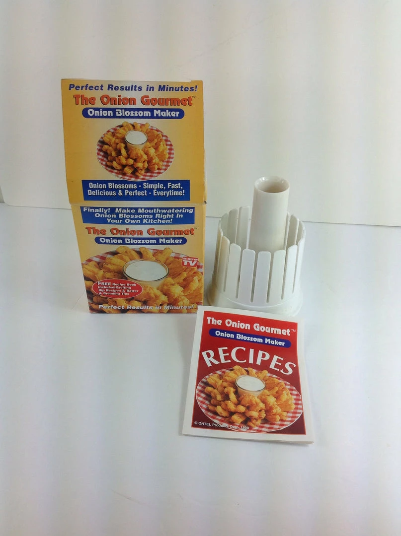Make perfect Onion Blossoms. We All Love’ em! And now you can make those mouth-watering gourmet onion blossoms right at home, quick and easy with fantastic results in minutes! Complete set includes: Onion Blossom Maker Complete easy to follow Instructions Dip recipes Batter and Breading Tips.